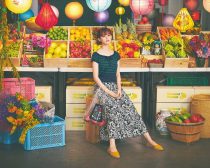 鮮やかなレモン柄のプリントワンピースはレトロシックでとても可愛らしいですね。一見、こうした柄ワンピースは若者向けといった印象がありますが、個人的には40代からの大人女性でも充分に着こなせるアイテムだと思っています。
