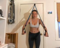 1)ドアに引っ掛けるフックにロープを掛けて、両端を引っ張れば胸筋、肩、二の腕などの強化に最適。