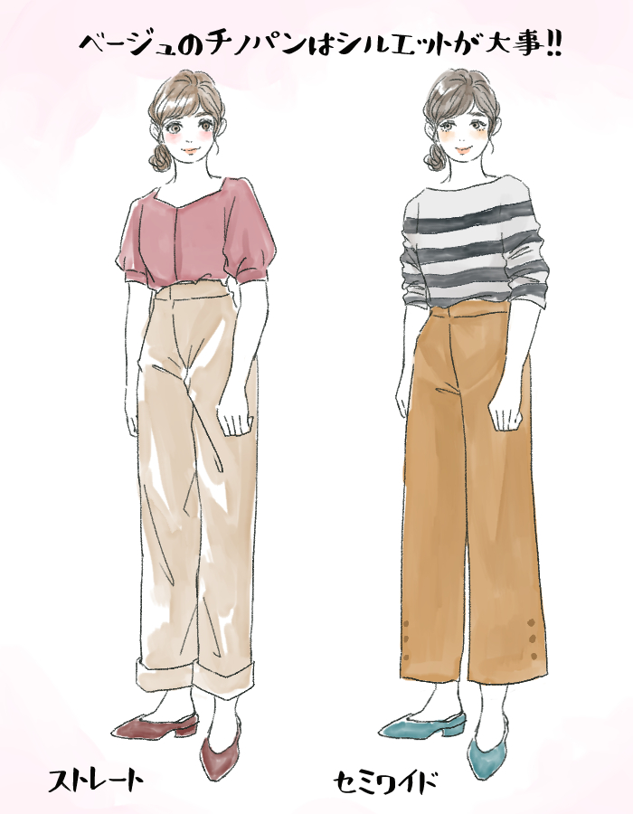 この3つのポイントを押さえると大人の女性に似合うコーディネートになりますよ! ぜひ、今季はベージュのチノパンコーデにも挑戦してみてくださいね。