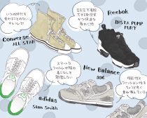 スニーカーと一言にいってフォルム、デザイン、機能性はブランドによって、そしてそのブランドのモデルによって大きく変わります。まずはご自身が「どんなスニーカーを求めているか」を明確にすることで、失敗のないスニーカー選びができるのではないでしょうか。