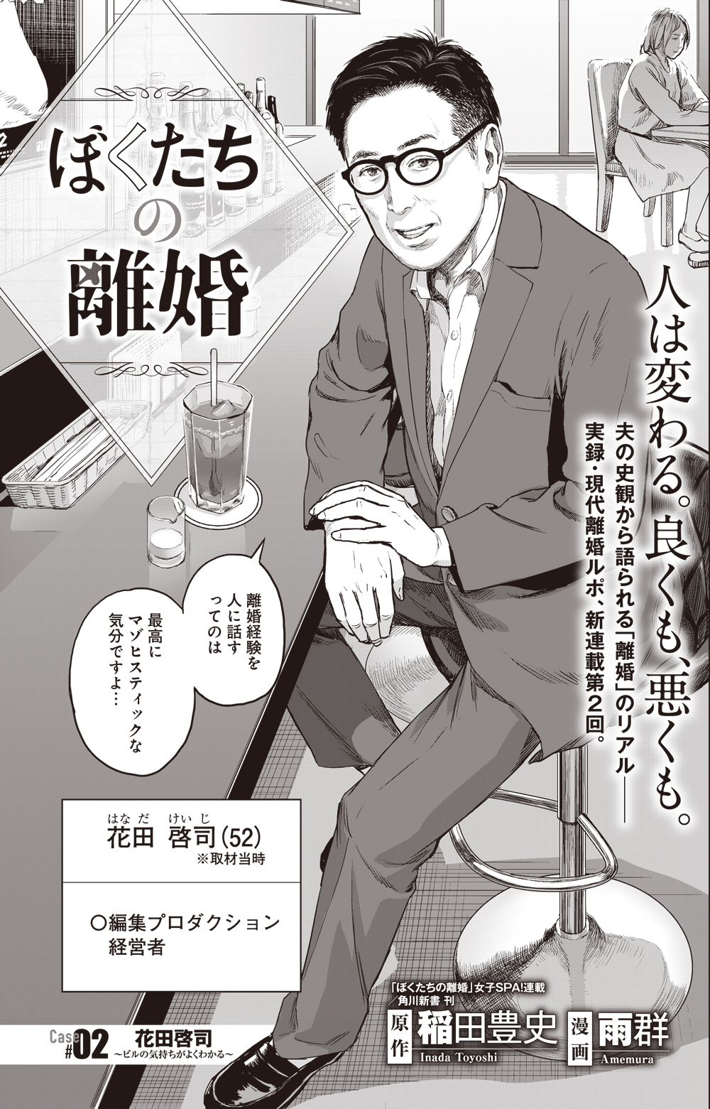 離婚した一般男性に離婚の顛末を聞くルポ『ぼくたちの離婚』(「女子SPA!」で連載中/角川新書より書籍化)が、漫画誌『グランドジャンプめちゃ』(集英社)でコミカライズ(作画は雨群さん)。