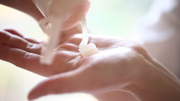 2 適量をとり、クレンジング剤を顔全体に広げ、クレンジング剤を肌の上で優しく動かすようにメイクを浮かせる。40秒~1分程度で終わらせる。洗浄系アイテムでの長時間マッサージは肌の負担になるので禁物。
