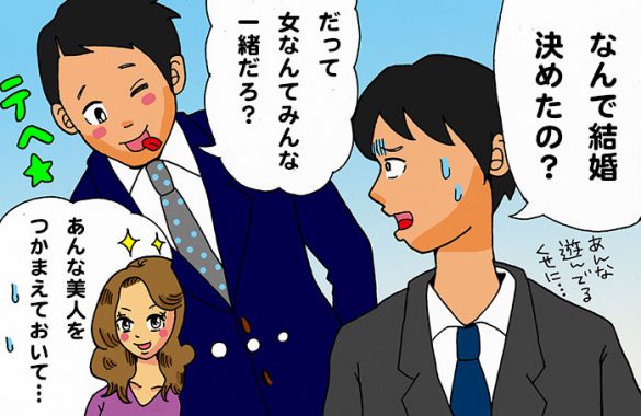 「Fは特にかっこいい訳ではないですが、穏やかな雰囲気でとっつきやすいのか、すごくモテるんですよ。でもその雰囲気とはうらはらに肉食系で、女遊びが酷いので…一生結婚しないんだろうなと思っていたので驚きました」
