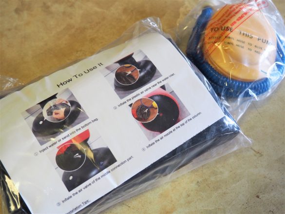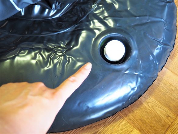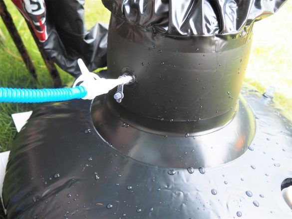 水を入れたら今度は空気。3か所空気を入れる場所があるのですが、付属の空気入れでは結構な時間を要します。足で踏んだり、手で押したり……、汗だく。これだけでも痩せるのではないかと思うくらいの重労働。