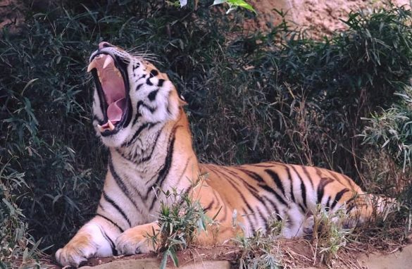 まず撮影のコツその1は、動きをよく観察すること。動物にはある程度、決まったパターンがあります。例えばこの写真のトラさんは、大きな牙がとても迫力がありますね。