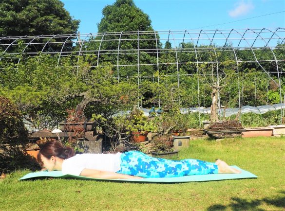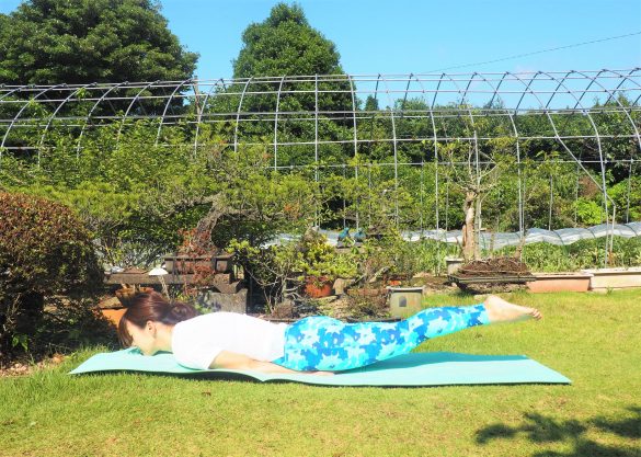 ここでは、背中とお尻にアプローチするヨガポーズ「バッタのポーズ」を紹介しましょう。