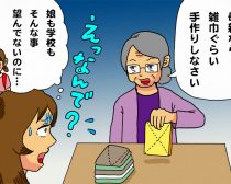 そこで志織さんは、R子ちゃんのクラスは市販の雑巾を持ってくる子がほとんどで、中には人気キャラクターの絵の入った可愛いらしい雑巾を買ってくる子もいて…今は、手間ひまかけて使い古しのタオルを縫って持って行く事が、母親の愛情表現という時代ではないと、お義母さんに説明しました。