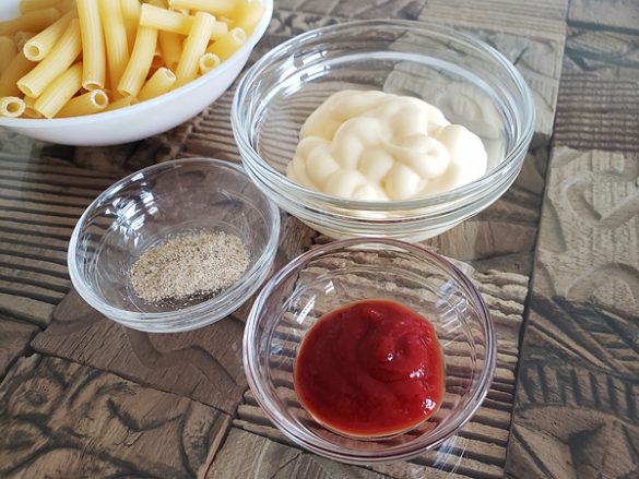 その他の調味料としては、マヨネーズと白コショウのみ。これでおいしいマカロニサラダを調味することが可能です。