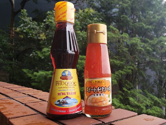 まずは調味料。エスニック風角煮用に、ベトナム定番の魚醤「ヌクマム」を。ヌクマムが手に入らなければ、タイの「ナンプラー」でも代替OKです。そしてバインミーの仕上げ用に生春巻きなどで定番の「チリソース」を用意しましょう。(チリソースやナンプラーは100円ショップでも結構売っています)
