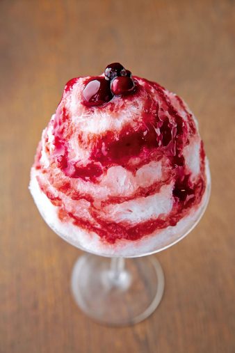’14年4月、東京・六本木にオープンすると、ティラミスやバナナきなこなど、珍しい味わいのかき氷が一年中食べられるとあって、一躍人気店に。定番や月替わりなど、多種多様なメニューがあるなかで注目したいのが通称「ナイトかき氷」。夜遅くまで営業しており、カフェとしてだけでなくバー感覚で利用できる同店自慢の、お酒を使ったかき氷だ。