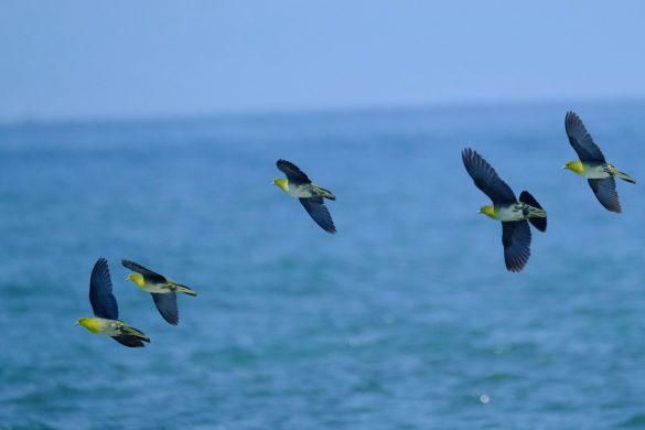 アオバオたちは海水を飲みに、海岸へ大群でやってきます。ハトの仲間で海水を飲むのはアオバトだけ。でも、海水なんか飲んでのどが痛くならないのでしょうか……。想像すると、のど飴をあげたくなってしまいます。しかも、海の近くでは猛禽類などの天敵にも襲われるかもしれません。中型の鳥といえども、荒波が打ち寄せる海岸に行くのはちょっと危ないのではないでしょうか。