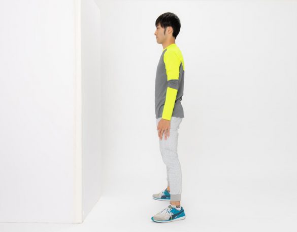 ※この時の上半身を前に傾けても頭や身体が壁に当たらないように注意しましょう。
