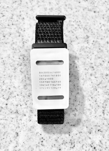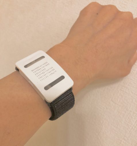 熱中対策ウォッチについている電池保護フィルムを剥がすと、起動音と緑のランプが点滅。マジックテープ式のバンドをペリペリッと腕に巻きつけて準備は完了です。ボタンを押して設定するなどの操作は一切ありませんでした。