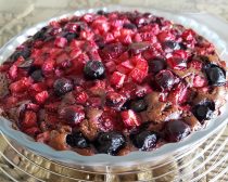 クラフティとは、フランスの伝統菓子の一つで、果物(サクランボやイチゴなど)、卵、牛乳、生クリーム、砂糖、小麦粉などを使って焼き上げた、かためのカスタードプディングのような焼き菓子です。ぎっしり濃厚な味わいが魅力ですが、バターや生クリーム、白砂糖たっぷりなのが難点。そこで、おいしさを損ねることなく、材料を大幅に見直ししてみることに。