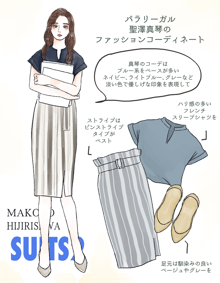 3回目となる今回は、正統派美人の新木優子演じるパラリーガル・聖澤真琴のファッションスタイルの特徴と、着こなしの真似ポイントをご紹介します。