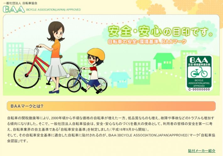 BAA(BICYCLE ASSOCIATION(JAPAN)APPROVED)マーク「自転車協会認証」(画像:一般社団法人 自転車協会 公式サイトより)