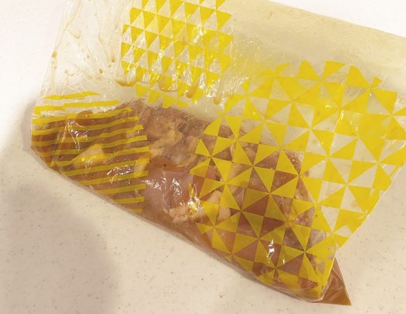 数あるレシピの中で、筆者はクックパッドに掲載されていたものを参考に作ってみることに。まずお肉と一緒にすりおろしにんにく、すりおろししょうが、醤油、溶き卵、酒、塩コショウをジッパーバッグに入れて揉み込みます。よく揉んだら封をし、冷蔵庫に入れてしばらく放置。