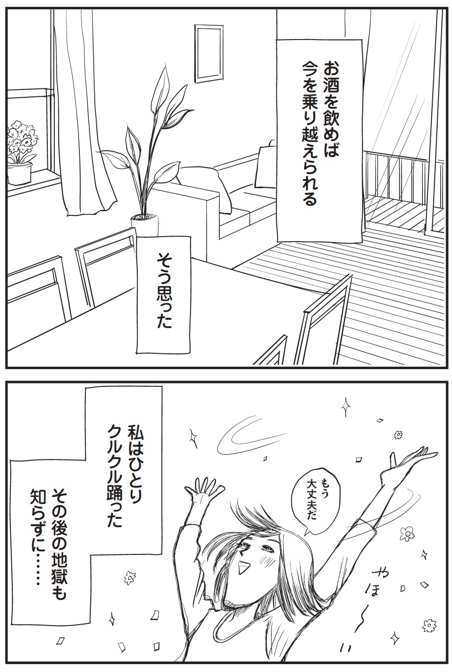 しかし、家事とブログ更新と漫画の仕事を抱え込んだ作者は、つらい時間を乗り切るためにお酒を利用するようになっていく。