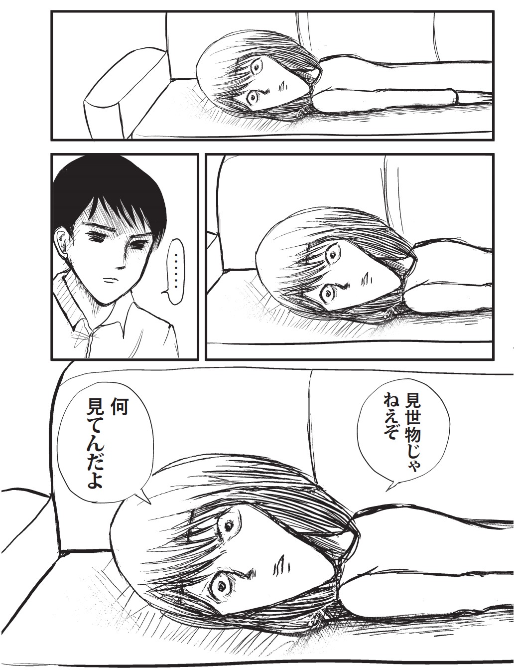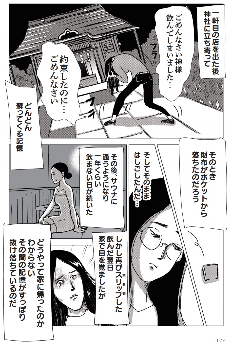 酔って記憶をなくす、人に絡む、物をなくす、おっぱいを出す…。奇行に走る作者の姿は、まるで酔った時の自分を見ているようでつらく、居た堪(たま)れない。それでいて、予測不可能な動きやコマ割りの絶妙な間でつい笑ってしまう。