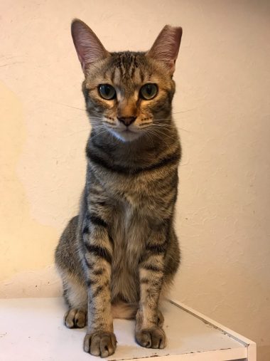 ジェリーちゃんは、元野良猫。生後間もない頃、カラスに攻撃され、ワキに大きな穴があいた状態で木の枝に引っかかっていました。