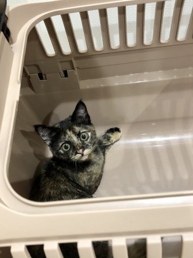 「初めて見た緑色の瞳が、とても綺麗でした。私がケージ越しに指をかざすと、触ろうと手を出してきました。職員の方に軟便だからビオフェルミンを飲んでいたと聞き、私と同じだと親近感も湧きました」
