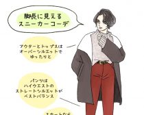 さて、そんなスニーカーですがモノによってはスタイルに合わなくて野暮ったく見えたり、脚が短く見えたりするものも……。そこで今回は、スニーカーで失敗を防ぐ! 脚長効果が期待できるスニーカーの選び方をご紹介します。