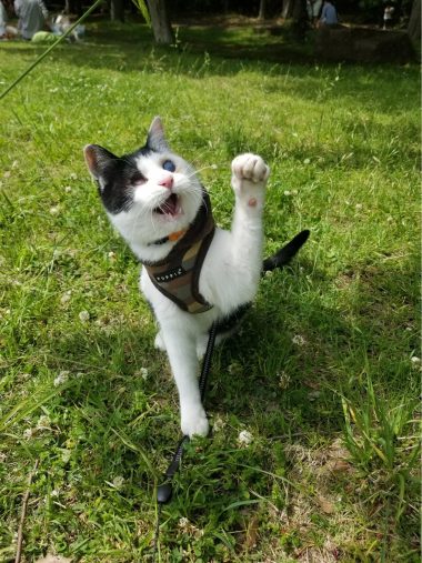 両手を広げ、無邪気に遊ぶゆとくんは、なちさん(@ash_bt_nachi)の愛猫。ゆとくんはチワワやシェパードなどのワンちゃんやキジトラのレティちゃんと共に、賑やかな日常を満喫しています。