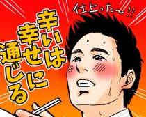 しかし、上着を脱ぎ、ネクタイをゆるめ、袖まくりをして「負けるか……!」と意を決した猿川は、「ズズッズズズーッ!」と麺をすする音も軽やかに、辛ウマな地獄を進みます。
