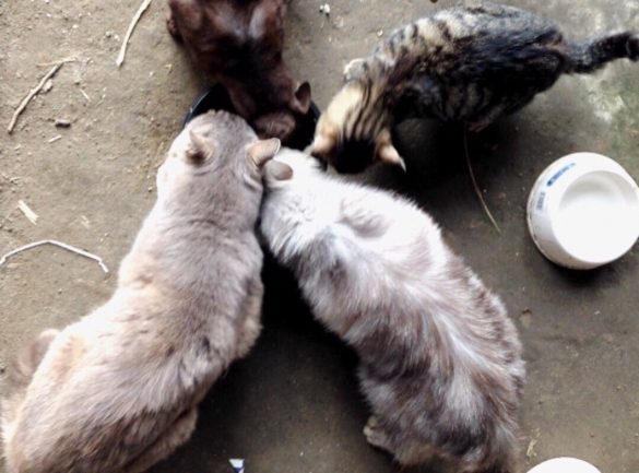 「親子の猫も来ていました。ルナは母猫からご飯を分けてもらったり、子猫たちと丸まって暖を取ったりしていました」