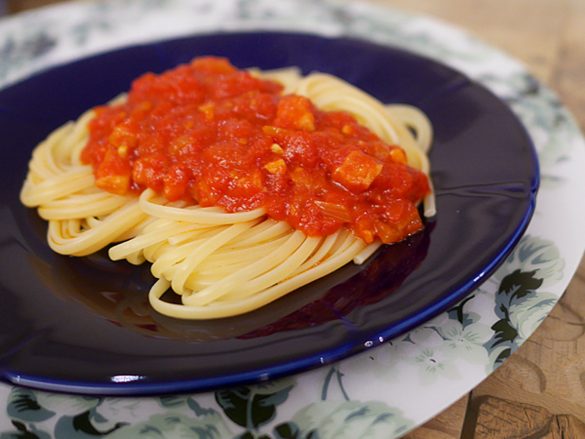 まずはこのトマトソースを、茹でたてのパスタにたっぷり乗せて召し上がってみてください。