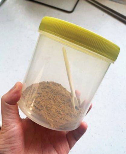 かつお節と煮干しはフライパンで軽く炒ってからミキサーに。面倒な人は、最初から粉末状のものを購入しよう