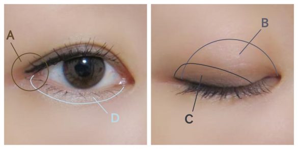 ③目尻側に濃いグレーをガッツリ(写真C部分)