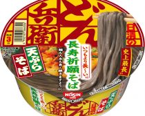 そんな「どん兵衛」から、今年の2月に「日清のどん兵衛 天ぷらそば いつもより長~い長寿祈願そば」が発売され、すすってもすすっても途切れない1メートル(製造時)もある長いそばが大きな話題に。