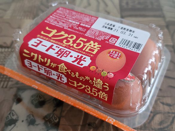 卵の“味”自体は、飼料によってほぼ決まると言われています。それではまず、確実においしい卵を探すにはどうしたらいいのでしょうか? その答えとして、あくまでも一例ですが、わかりやすく提示してくれているのが、「ヨード卵・光」(希望小売価格:税込356円)です。2020年にパッケージがリニューアルされ「コク3.5倍」と書かれています。