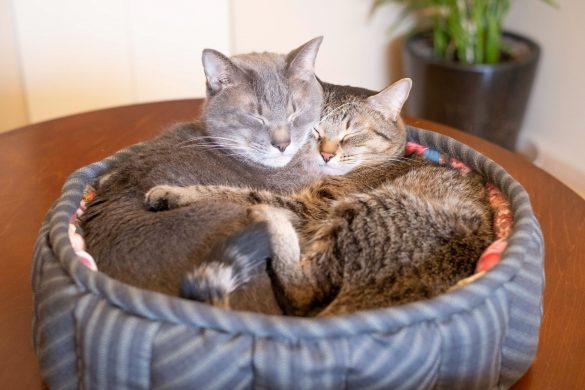 2匹の日課は、ゆずなつさんの友人が手作りしてくれた猫ベッドで眠ること。