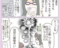 ゆるいタッチもかわいい、ともさんの『エヴァンゲリオン』の説明ですが、ともさん自身も最初は、「主題歌は知ってるけど、話はよく知らない」という状況だったようです。ところが、幼稚園に通う年中の娘さんの、「エヴァンゲリオンを見たい」という一言で状況は一変。