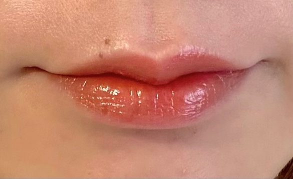 これはグラスティングウォーターティントのどのカラーにおいてもそうですが、透明なツヤ感の中に色みを閉じ込めているような仕上がりなので、飲み物を飲んでも色のないグロスが付着しているというレベルでカップへの色移りはほとんどなし。