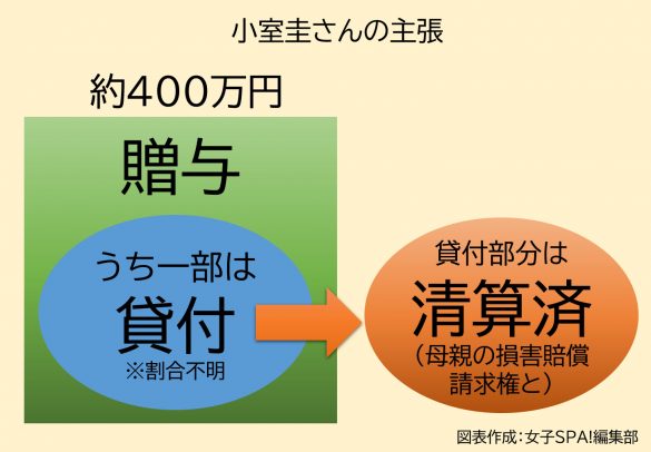一部は贈与、一部は貸付であったが、貸付部分は母親の損害賠償請求権と清算されたという主張をしています。贈与額と貸付金の割合も示されず、かなり技巧的な法律構成をしているので、報道でも小室さんの意図を正確に汲みとっている識者は多くないようです。