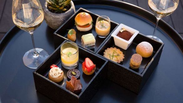アフタヌーンティーボックスが人気で、宝石のように見立てられたドルチェ(スイーツ)とセイボリー(サンドウィッチなど)をお重の中におさめた一品です。銀座でショッピングした後、こちらで優雅な午後を過ごしてみては。