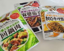 種類は、「回鍋肉」(268円)、「麻婆茄子」(298円)、「きのこのキーマカレー」(268円)の他、ガパオやタコライスといったユニークなものまでバリエーション豊かに揃っています。今回は野菜をたっぷり使うことが目的ですから、オススメは回鍋肉と麻婆茄子。封を開けると“大豆のお肉”と“専用タレ”がセットになって入っています。