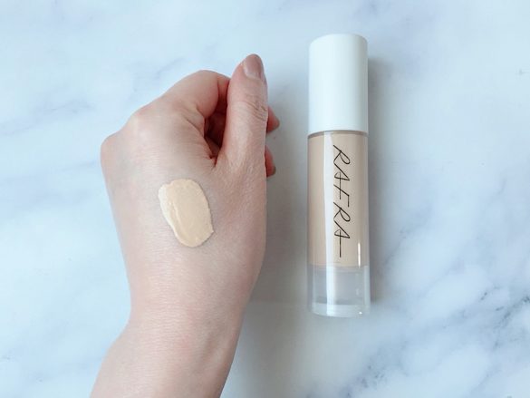 わたしが使っているラフラの「モイストデイカラー エンリッチ」(税込3300円)は、洗顔後これ1本を使うだけでスキンケアからベースメイクまで完了します。  エラスチンやレチノールなどの保湿成分配合、もちろんUVカット機能(SPF30 PA++)も備わっているのでこれからの季節でも安心です。  顔全体には指を使ってざっと伸ばし、小鼻やこめかみなどの細かい部分はスポンジでなじませると肌にピタッと密着します。
