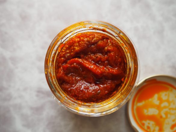 唐辛子やガーリック、コリアンダー、クミンといった香り高いスパイス、そしてパプリカを使った真っ赤なペースト状の調味料は、香りと味に中毒性アリ(いい意味で)なんです!