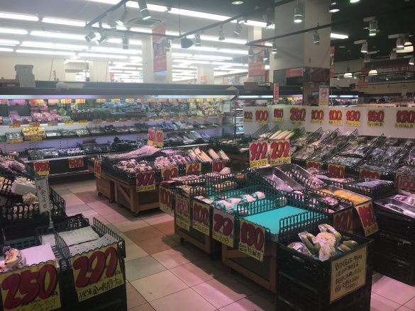 青果売り場を通り過ぎると、続いて広がるのは精肉売り場です。