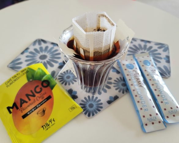 私もカルディファンの一人ですが、ここ最近特に注目しているアイテムがあります。それは、「フレーバーコーヒー」。カルディはもともとコーヒー専門店(コーヒー豆の焙煎・卸売)がルーツですから、もっとも信頼できると言っても過言ではないジャンル。アイスコーヒーにも対応する手軽なドリップタイプが登場し、「これぞカルディの逸品!」とオススメしたくなりました。
