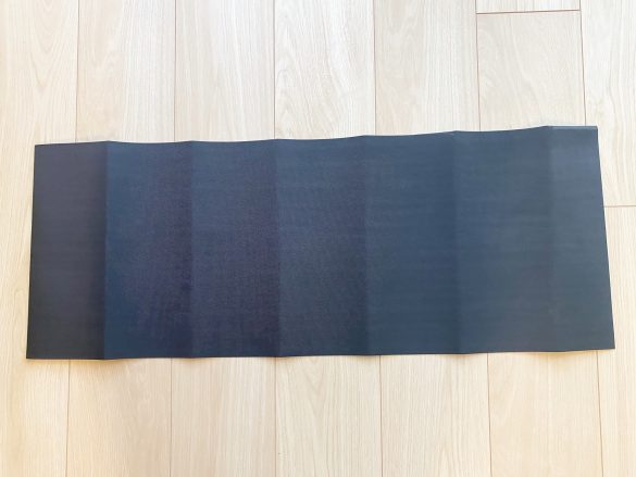 表面が黒色の薄いレジャーシートのような生地を、ハサミやカッターで好きなサイズにカットして使用。備長炭を配合したシートには防カビ・抗菌・除湿の効果があり、嫌な臭いやカビから靴を守ってくれます。炭には、ニオイの元となる雑菌の繁殖を抑えてくれる効果も。