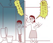 驚き、混乱する小林さん。大好きだった父親とまた一緒に暮らしたい、引っ越したくないと母親に抗議すると、叩かれた。小林さんはトイレに籠城。すると、ドアの外から恐ろしい脅迫が飛んできた。