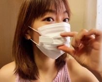「マスクエアーファン」はガーゼ、ポリウレタン、不織布とさまざまなマスクに対応するとのことですが、まずは不織布マスクに取り付けてみました。