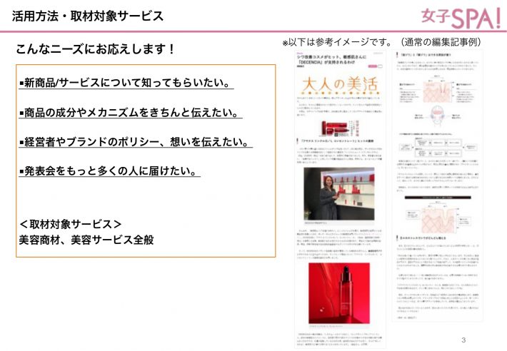 女子SPA!の人気企画「大人の美活」のフォーマットで、貴社の商品やサービスを紹介いたします。