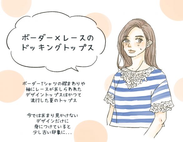 カジュアルなボーダーに、上品なレースがあしらわれた夏トップス。一見すると大人女性向けのカジュアルアイテムと感じますが、もしこれが自宅のクローゼットに眠っていたらそろそろお別れを言うタイミングかも。