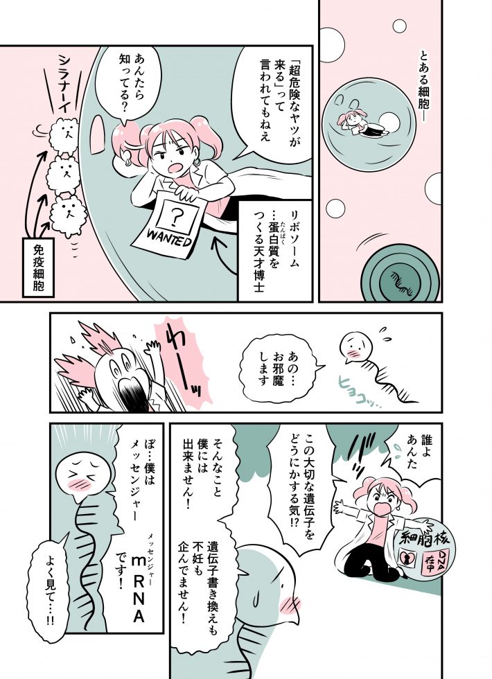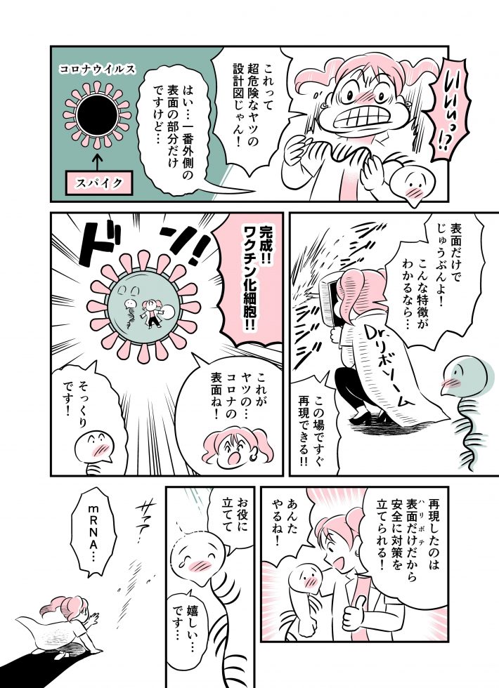 また、「ゆうこす賞」に輝いたのは、絵柄がかわいらしい「Dr.リボソームの遺志」。作者の「おちゃやま」さん(ペンネーム)は、普段は育児マンガを書いているそうで、コロナワクチンの仕組みを子どもにもわかるように表現しています。
